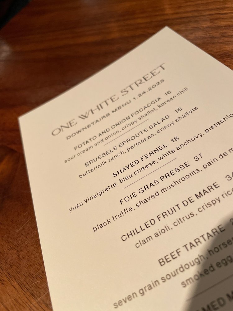 One White Street Menu (Update 2025)